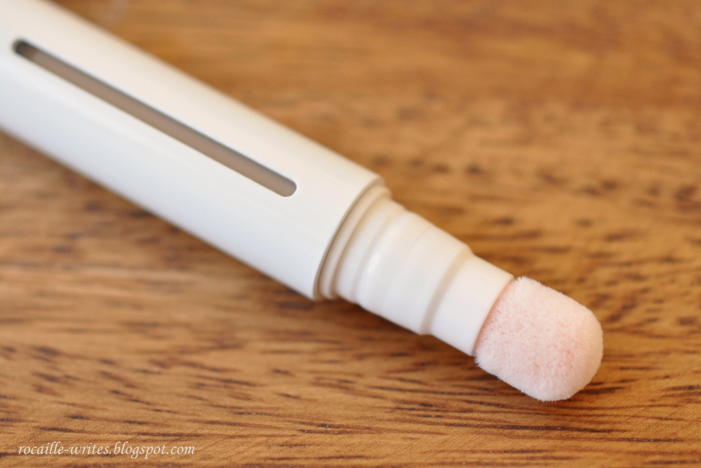 First off, I have to say that Laneige's Cushion Concealer doesn't actually have a cushion - the applicator is in fact a soft fluffy... ehm, ball, I guess. Or round doe foot. It looks pretty adorable when brand new with its baby pink color. The delivery method of this concealer is a clickety pen, and I absolutely love, love that there's a window on the side of the packaging so you can easily see how much product you have remaining. The concealer with the most similar packaging on the US market right now is the newly released Burberry Cashmere Concealer, while the Maybelline Age Rewind is a similar concept, but it features a sponge on the end and the size of the applicator is much larger. Laneige's doe foot fits perfectly into the curves around your eyes or nose.